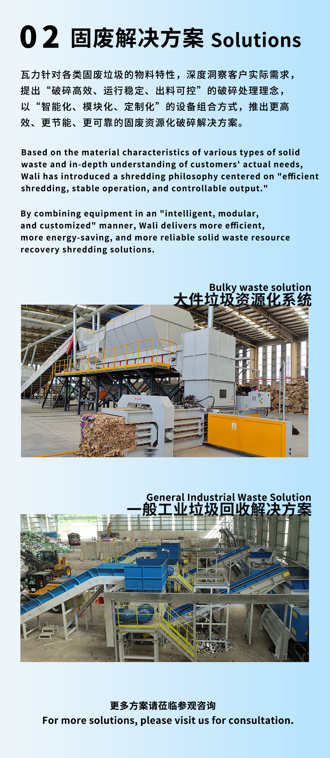 Having been rooted in the field of solid waste shredding for many years, Wali has built a solid technological foundation and accumulated extensive project experience in the shredding of various solid wastes, including bulky waste, general industrial waste, paper mill ropes, municipal solid waste, end-of-life vehicle shells, kitchen waste, and biomass straw.